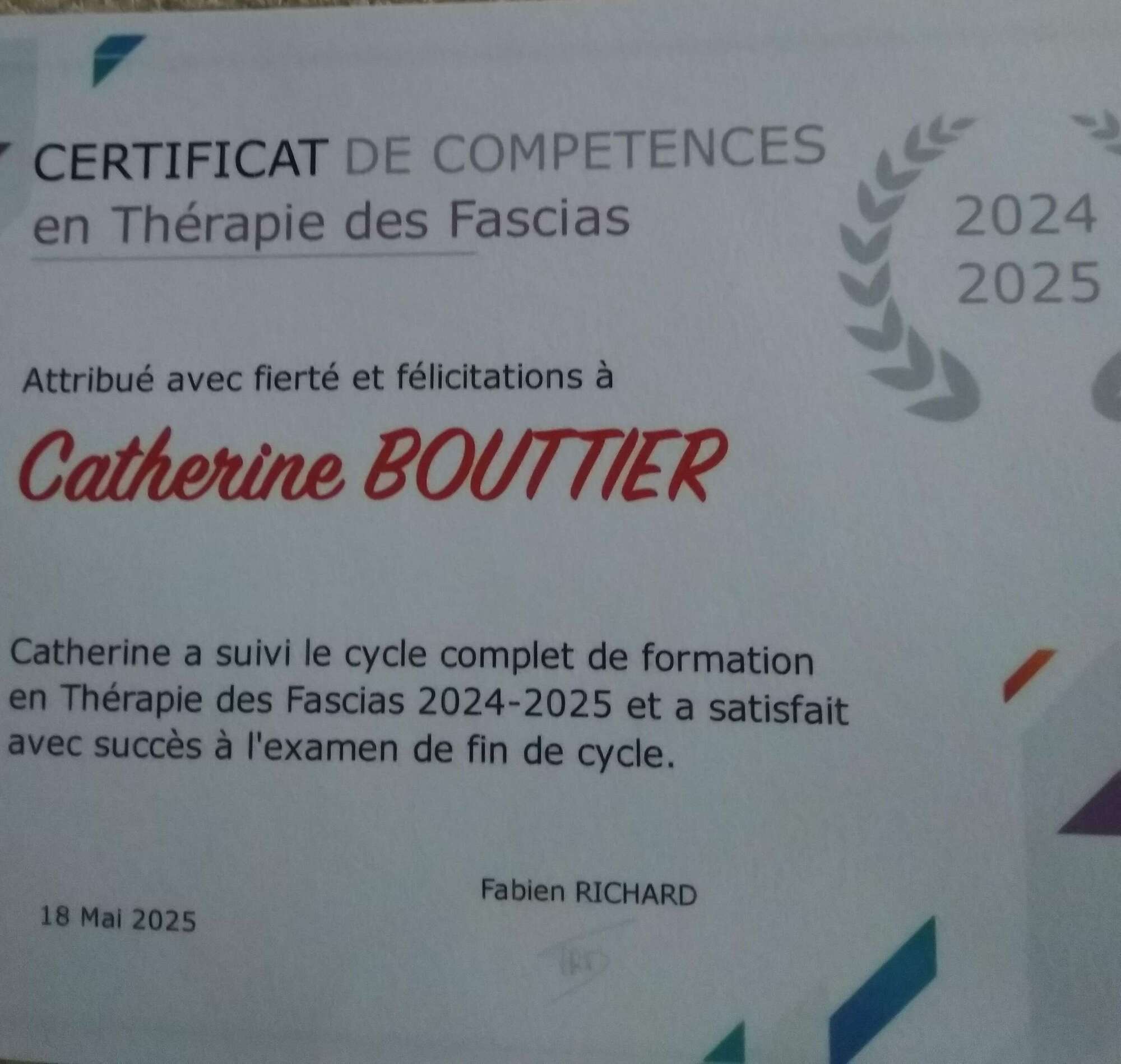 Certifiée en fasciathérapie selon l’enseignement de Fabien Richard, je propose aujourd’hui des séances individuelles dédiées à l’écoute du corps.